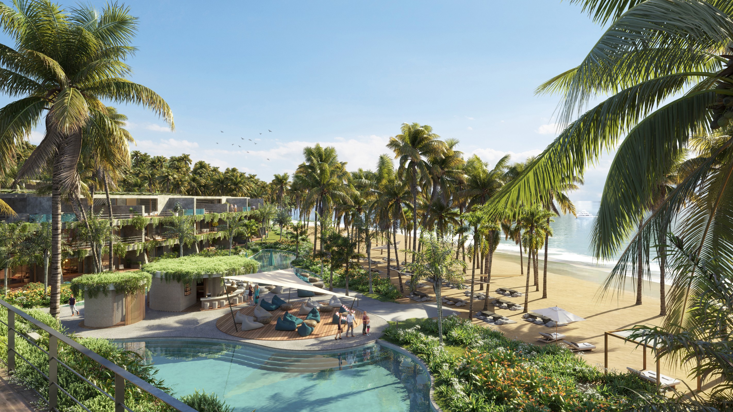 Do you know about our project of furnished residences with 1, 2, and 3 bedrooms, featuring Jacuzzis? Located on the beachfront in Cosón, Las Terrenas. It has 4 stunning pools, which you can access from all first-level apartments.